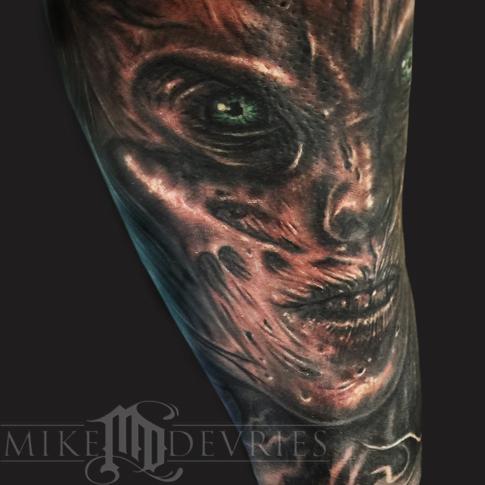 Close up of an evil face tattoo that I did recently.