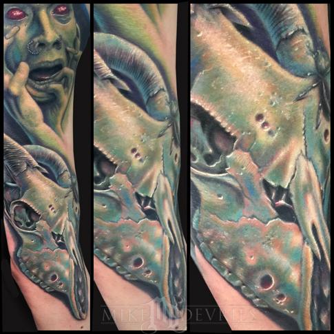 Worked on this goat skull and Sopor Aeternus - getting it ready to go full sleeve.