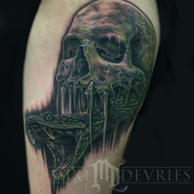 The Dark Mark tattoo from Harry Potter with a realistic touch.