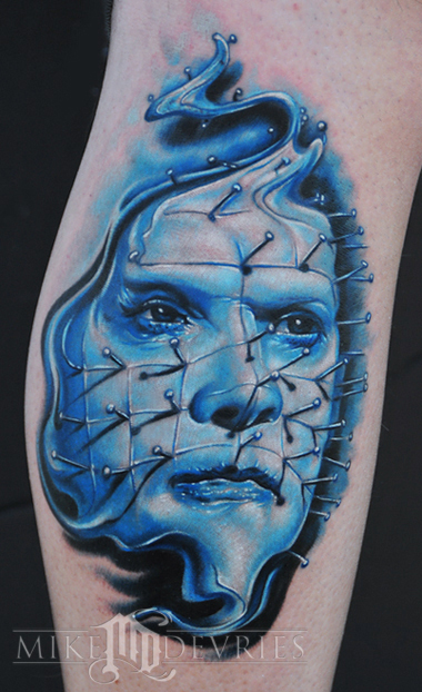 Pin Head tattoo, tons of fun with this one, Pin Head has been done many times so I put my own little twist to it.