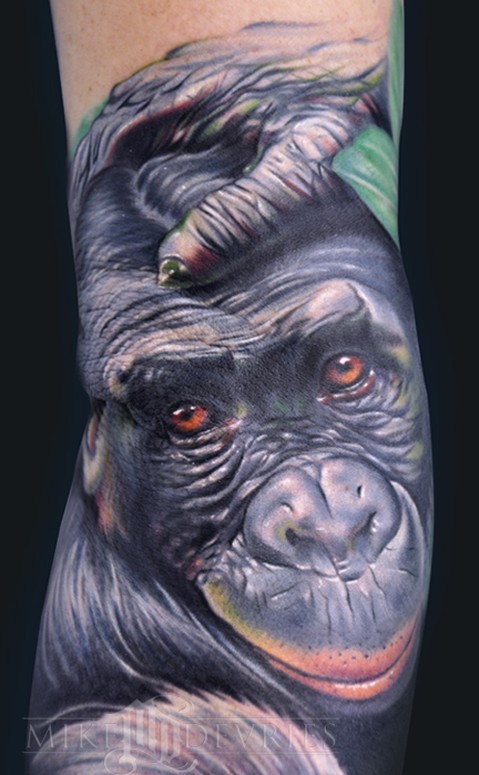 An addition to the monkey sleeve i've been working on,one more to do and it will be complete,i'll post full arm pics when its done.This Bonobo is on and next to the elbow.used the Neuma Hybrid w/air.