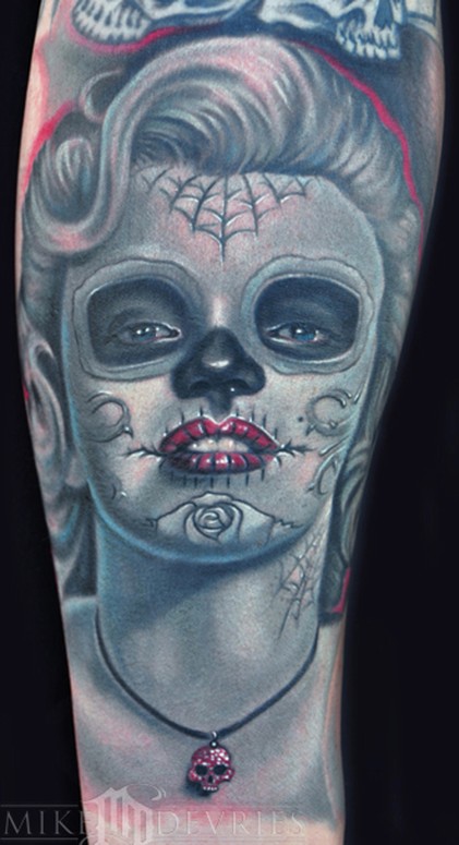 This Marilyn Monroe tattoo was done over a lot of old lasered black and grey tattoos,it was pretty light but still had to deal with it in certain areas.