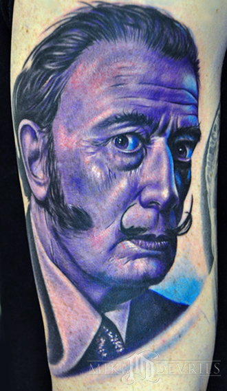 This Dali Tattoo isn't quite finished, we started to run out of time because he had to get to work, but figured i'd post it up anyways. We'll get back on it soon to finish him up, I'll post new pics when I finish it.