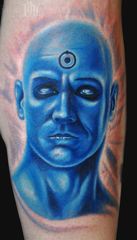 Tattoo of Dr. Manhattan from the Watchmen movie. Did this piece at the 2010 Detroit tattoo convention, used my Iko coil Machines.