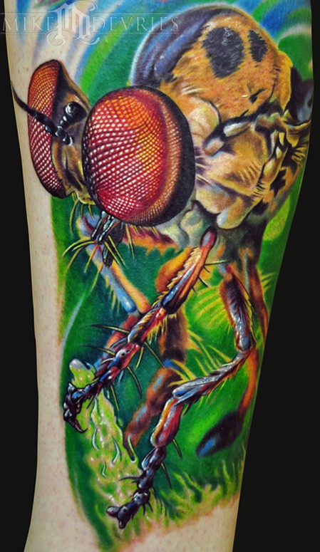 This bug tattoo was done on Katelyn crane,an artist that works with me. She is a huge fan of bugs and especially a fan of Thomas Shahan's photography,we emailed him about using one of his pictures for the tattoo and he was thrilled with the idea. This tattoo took about 7 hours,done in one sitting,its about 4.5 inches wide and 9 inches tall,used the Stigma Hypers and all Fusion Ink.