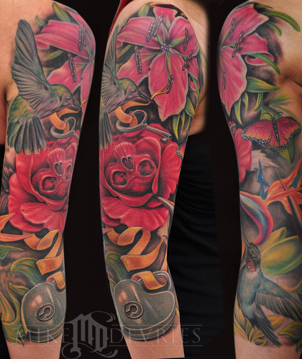 Had a lot of fun with this Tattoo full of flowers, hummingbirds, heart lock and key,rose with a skull in it. There is a lot of meaning behind this tattoo and im going to have to get the description from the girl its on. Hopefully soon, I'll get back in here and post the meaning behind it all.