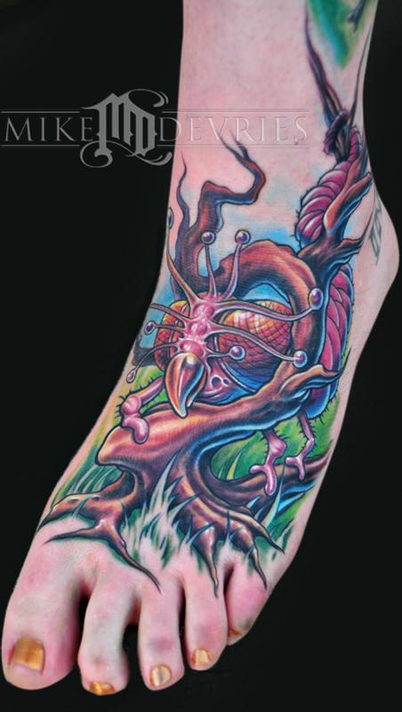 Made this one up. Its not a real bug. Had a lot of fun with this one! Its something I sketched out and she liked it so we went with it...On Katelyn Crane that works with me.This was the first sitting, ill probably go back into it to bold it up even more especially since its on the foot,and we'll connect her leg piece to it. All Eternal Ink. Stigma Hyper for lining, Stigma bizarre and InkJecta rotary protoype for the coloring.