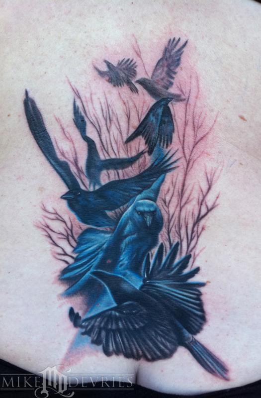 Crow Tattoos, lower back piece.