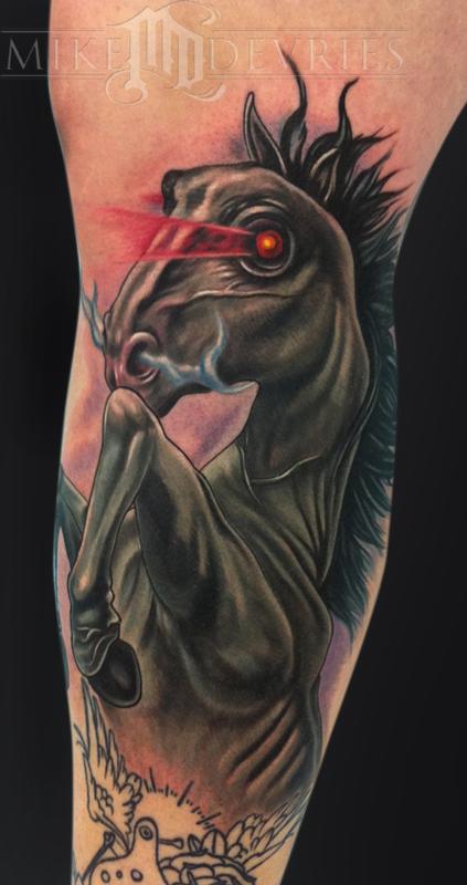Did this Horse tattoo on fellow Tattoo Artist Brett Herman. Had some fun with it! Stigma Bizarre v2, NeoTats and Eternal Ink.