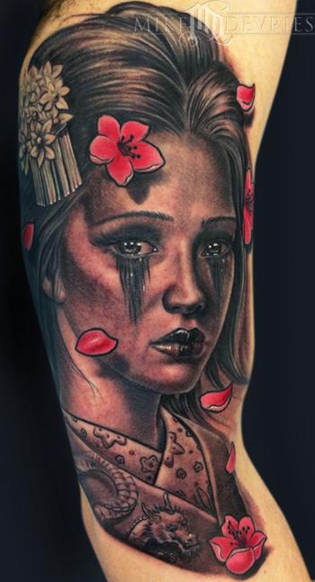 First session collaborated with my boy Duffy & worked on it together taking turns. Second session I went in to it myself and finished her up. Eventually will be a Japanese inspired tattoo sleeve. Stoked to get back into this arm. Ill post a healed pic of this Geisha tattoo soon...