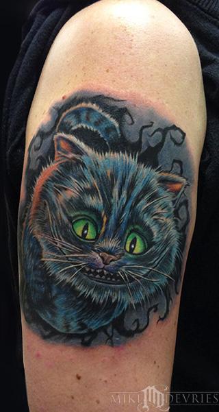 Fun Cheshire Cat tattoo! The Sullen video guys came in and flimed this one for Sullen TV, a short video clip should be on U tube soon, they are doing segments called "Under The Skin." They also filmed the studio which will be a separate video that will be up soon too. Thanks Sullen!