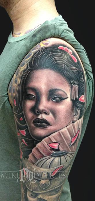 This Geisha caps a sleeve that has been in progress for a while. Just gotta do one more final pass thru his whole arm to fine tune some things and ill post some healed full arm pics.