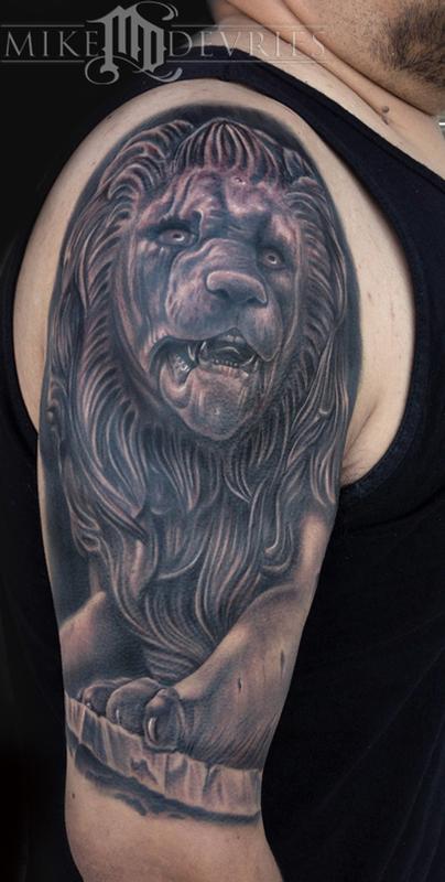Lion Statue... Been doing a lot of statue tattoos lately. Good times!