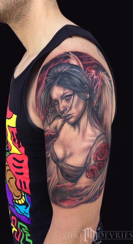 Had some fun with this custom angel tattoo. Ill post a healed pic one day.