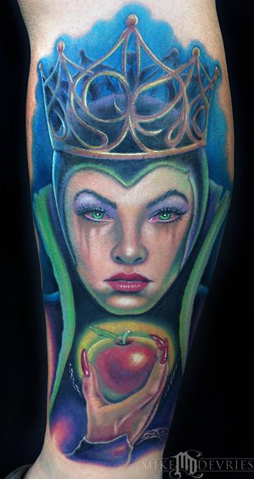 A Fun Evil Queen Tattoo! This is pretty big on the side of her leg, split it up into two sessions to complete it.
