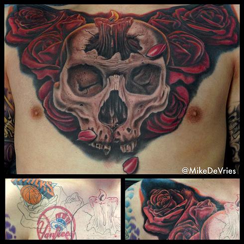 This was a fun tattoo! It took a couple passes to hide the cover-ups completely but I was happy with the end result!