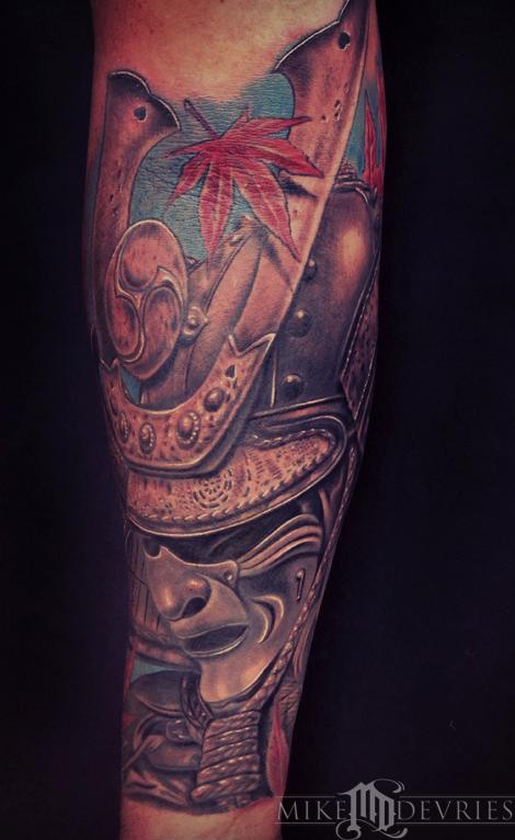 A samurai tattoo that is now turning into a sleeve project. We recently added a big dragon on the other side. Once I get it all done I'll post finished photos.