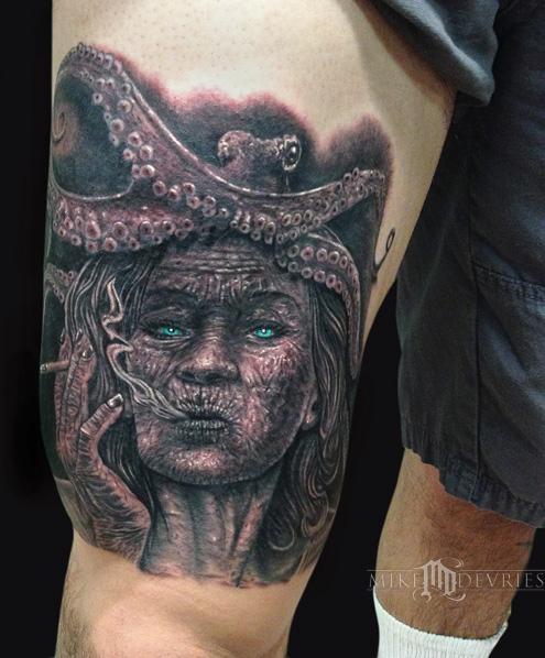 Octopus Lady Tattoo. An interesting tattoo request, fun piece! This is fresh in the photo, it will lighten up a lot once it heals up!