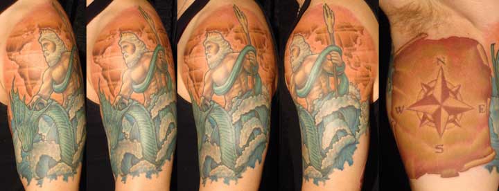 Comments: poseidon and a sea serpent, wavey waters, global map, and nautical star compass underneath...yep, good times on another from new jersey | |