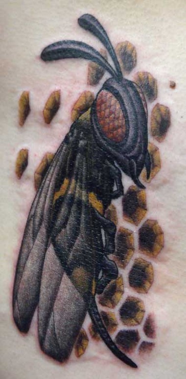 Comments: i never have gotten to tattoo a realistic bee, so, i thought this was a very fun piece...