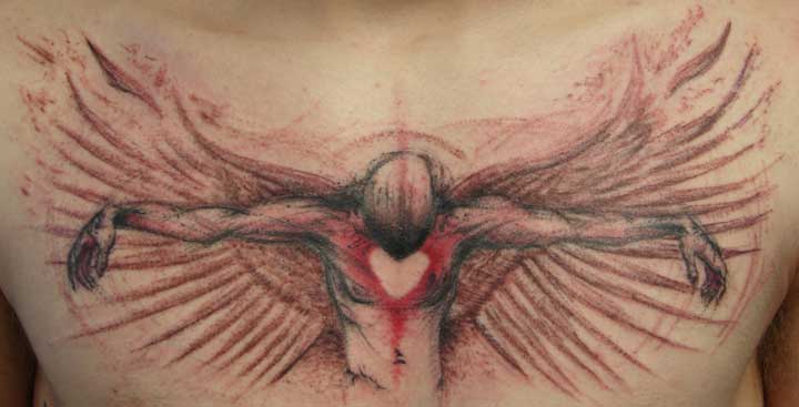 Comments: after the first sketchy posed dude healed up, this navy guy decided to come back to wings added to his chest piece, before he shipped off to san diego...best of luck on the west coast... | |